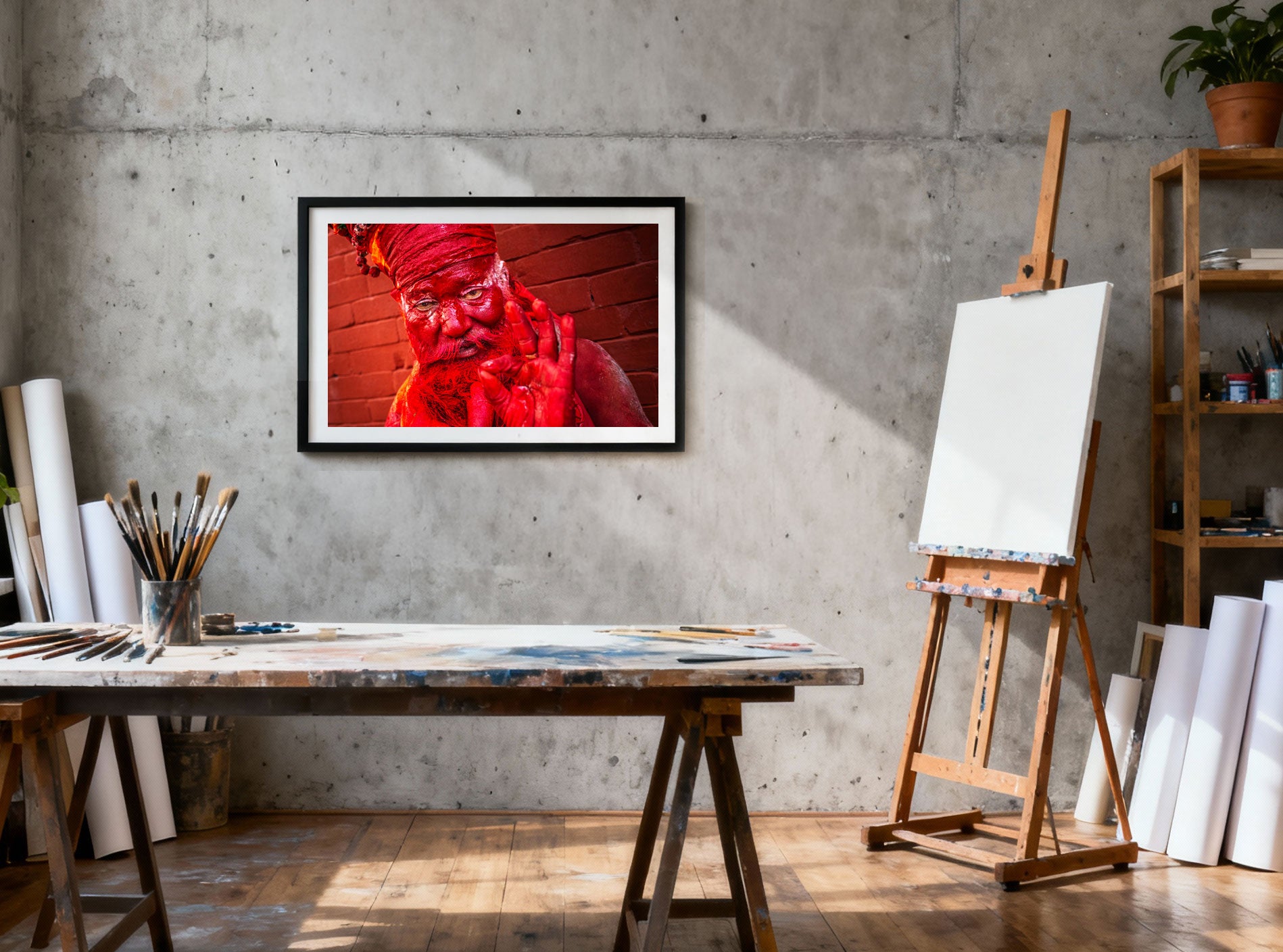 Farbe wird zur Oberfläche, zur Geste, zur Grenze. Der Blick ist offen, fordernd, ruhig. Keine Pose, kein Ritual im Bild – nur Präsenz. Die Hand hebt sich, nicht erklärend, eher haltend.